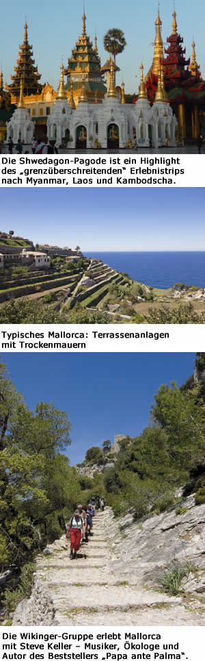 Hagen – Der neue Flyer mit den Extratouren 2012/2013 von Wikinger Reisen ist da. Mit 14 Wander- und Fernreisen, die nicht im Katalog stehen. Darin eine Wander- und Genuss-Tour auf Mallorca und ein „grenzüberschreitender“ Erlebnistrip nach Myanmar, Laos und Kambodscha.