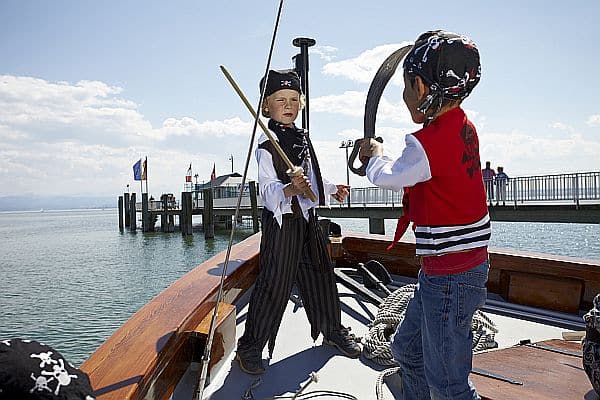 Ein solcher Urlaubsort ist Immenstaad am Bodensee, der vom Tourismusverband Baden-Württemberg bereits mehrfach für seine Familienfreundlichkeit ausgezeichnet wurde. In der malerischen Kulisse der Umgebung erwachen die Kleinsten hier selbst zu „Captain Sparrow“. Denn dank des vielfältigen Ferienprogramms für Kinder ab 3 Jahren können die Racker ihrem Drang nach Bewegung und Abenteuer freien Lauf lassen, wenn es heißt: Ahoi, Piraten! Zum Beispiel starten in den Oster- und Pfingstferien wieder die beliebten Piratenfahrten ab Immenstaad. Mit Kopftuch und Augenklappe ausgestattet begibt sich die ganze Familie dann auf die Suche nach einem versteckten Goldschatz, löst Piratenrätsel und macht auf einer Lädine den Bodensee unsicher. Ein Erinnerungsfoto am Steuerrad rundet das Abenteuer perfekt ab. Aber auch im Familienbad Aquastaad kommen die kleinen Wasserratten in der Piratenlandschaft auf ihre Kosten.
