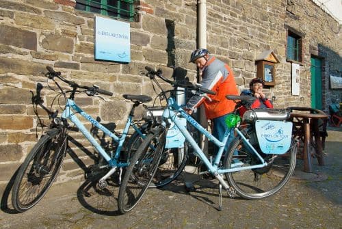 Egal ob ein kleiner Anstieg oder Gegenwind – der leise Motor unterstützt mit Leichtigkeit und macht die Fahrt zu einem unvergesslichem Erlebnis in der Natur. In der Regel reicht der Akku für einen Ausflug von ca. 50 km. Dies hängt jedoch speziell von der Strecke, der Motorleistung und dem Gewicht des Fahrers ab und kann daher variieren. Bei weniger anspruchsvollen Strecken, die abwärts verlaufen, empfiehlt es sich, den Motor komplett auszuschalten, um Energie für die nächsten Bergstrecken zu sparen. Im Anschluss an die Tour werden die Räder an der Ladestation für den nächsten Radfahrer wieder aufgeladen.