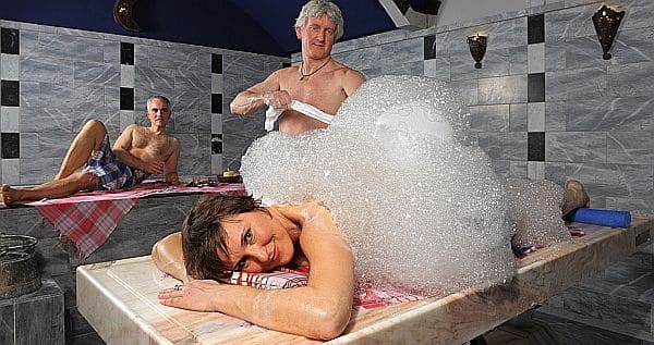 Im Türkischen Bad zelebriert der Hamam-Meister auf dem beheizten Marmorstein eine Seifenschaummassage. (Foto: epr/Kur und Bäder GmbH Bad Krozingen)