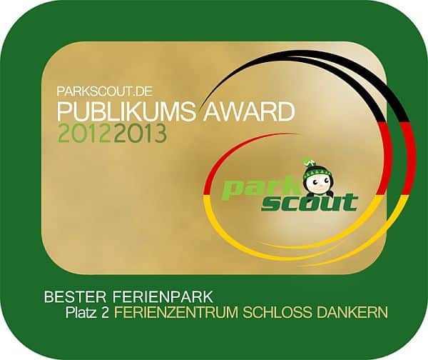 Das Ferienzentrum Schloss Dankern wurde, zum zweiten Mal in Folge, in der Kategorie „Bester Ferienpark“ von fast 40.000 Lesern des Freizeitpor- tals parkscout.de auf den 2. Platz gewählt. Der Award wird jährlich in unterschiedlichen Kategorien vergeben und zählt zu den wichtigsten Auszeichnungen in der Freizeitbranche.  Parkscout_Award