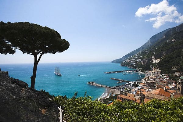 Rund um das Mittelmeer warten auf Kreuzfahrer lebendige Metropolen und malerische Landschaften. Zu den beliebtesten Zielen zählt beispielsweise Sorrent an der Amalfi-Küste.