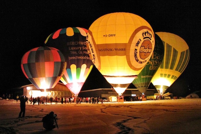 Sternenklare Nächte sind im Lungau keine Seltenheit. Die Region rund um den Hauptort Mauterndorf zählt zu den sonnenreichsten Regionen Österreichs. Von den stabilen Wetterverhältnissen profitieren auch die Ballonfahrer, die sich jedes Jahr im Januar hier treffen. 2015 findet die traditionelle Ballonwoche vom 17. bis zum 24. Januar statt. In dieser Zeit kann man die internationalen Teams beim Start beobachten und sich sogar selbst bei einer Tour über die Alpen als Ballonfahrer versuchen. Eine rund 30-minütige Ballonfahrt kostet etwa 50 Euro pro Person, eine Stunde 100 Euro. Höhepunkt der Ballonwoche ist das Ballonglühen am 18. Januar. Ab 18.30 Uhr sind die Ballone kurzzeitig von innen illuminiert und erleuchten so die kalte Winternacht.