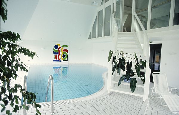 Zum persönlichen Verwöhnprogramm gehört natürlich auch der tägliche Besuch des farmeigenen Schwimmbads. Im hell gestalteten Wassertempel lassen sich ganz entspannt ein paar Bahnen ziehen. (Foto: epr/Nordseefarm)