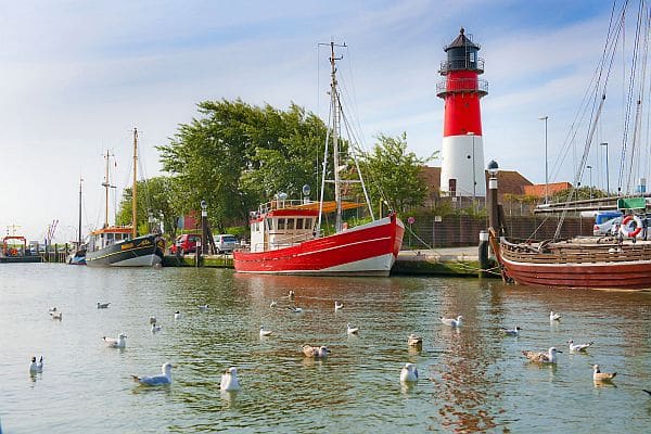 Sturmfluten gehören zur Nordsee wie das Salz ins Meer. Heute sind diese Naturgewalten allerdings viel besser vorhersagbar als früher. In der Büsumer Sturmflutenwelt „Blanker Hans“ wütet die tosende und raue Nordsee auf virtuelle Weise gleich mehrmals am Tag und versetzt die Besucher in die brenzlige Situation der großen Fluten von 1362, 1825, 1962 und 1976. Interessantes gibt es auch im Büsumer Hafen zu sehen, wo die Krabbenkutter nach ihren Fangfahrten auf dem Meer festmachen. Wer möchte, kann auf einem der hübschen Boote auch in See stechen. Während die Kinder mit Papa auf große Fahrt gehen, kann sich Mama im Gesundheits- und Thalassozentrum „Vitamaris“ verwöhnen lassen.