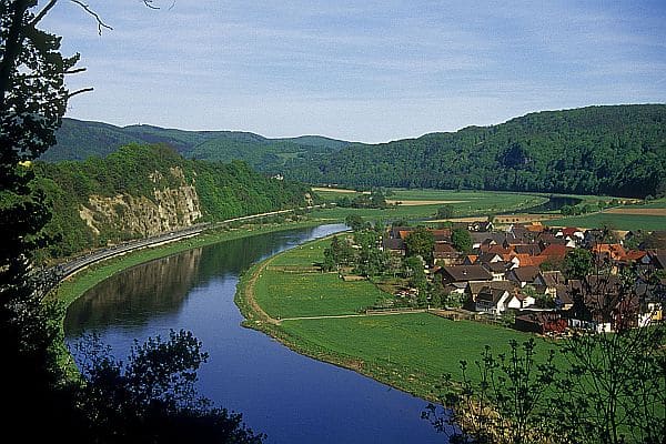 Vom Weserbergland-Weg ergeben sich immer wieder schöne Ausblicke übers Wesertal.