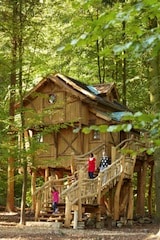 Naturnah, originell und kuschelig warm – eine Übernachtung in den komfortablen Baumhäusern ist ein echtes Erlebnis für Familien und Paare. Hochwertig ausgestattet mit Aufenthalts- und Schlafbereich, Sitzecke mit Flachbildfernseher, Kaffeemaschine und Kühlschrank sowie eigenem Sanitärbereich mit Dusche und WC, bieten die Baumhäuser Hotelkomfort in luftiger Höhe für 2-4 bzw. 5-6 Personen. Im Winter sorgt eine Fußbodenheizung für behaglichen Wohnkomfort. Zudem ist WLAN kostenfrei verfügbar. In den Abendstunden kann man die Wölfe im Wildparadies heulen hören – ein eindrucksvolles Erlebnis!