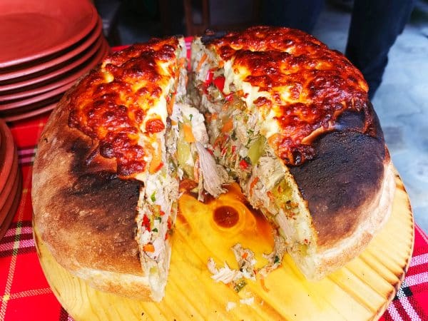 Das Entree war ein Shopskasalat, dann eine Suppe und zum Hauptgang aßen wir Buhcha, ein Brotgericht mit Schweinefleisch, das im Brot gebacken wurde. Das Gericht sah exotisch aus und schmeckte vorzüglich.