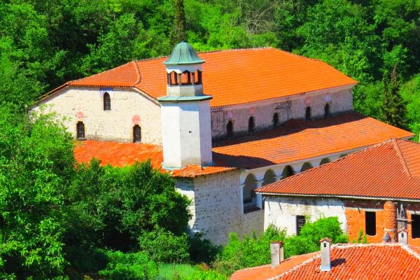 Nach der Weinprobe blieb noch Zeit, um in das nahegelegene Kloster Rozhen ein zu kehren. Dieses Kloster in der Nähe des Piringebirges zählt mit kunstvollen Wandmalereien aus dem 16. Jahrhundert zu den schönsten und ältesten orthodoxen Klöstern von Bulgarien. Es ist vor allem wegen der Malereien und Ikonenbildnissen sehenswert. Der Großteil der Fresken zeigt Heilige oder Geschichten aus der Bibel. Die Ursprünge gehen auf das Jahr 890 zurück.