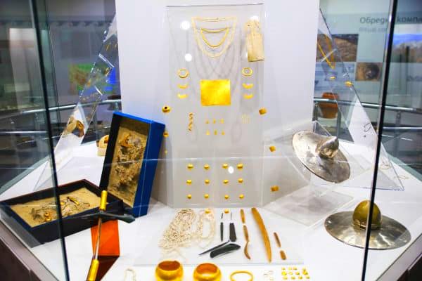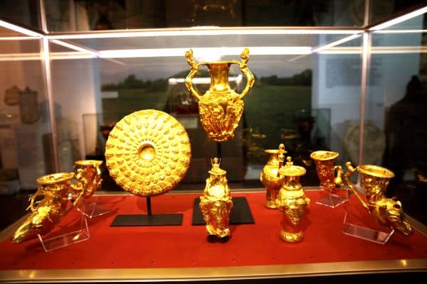 Diese Kleinode stammen noch aus der Zeit der Thraker, ein 2400 Jahre alter Schatz mit über 15.000 Goldobjekten. Wir erfahren in dem musealen Gebäude die Geschichte einer Bauersfrau, die 2003 von ihrem Mann eine goldene Kette bekommen hat, die er für sie aus auf seinem Feld herumliegenden Goldstückchen zusammengesetzt hatte. Genau wie die Thrakerfrauen hatte sie sich immer besonders sicher gefühlt, wenn sie ihren Goldschmuck trug.