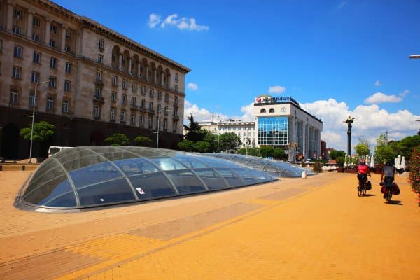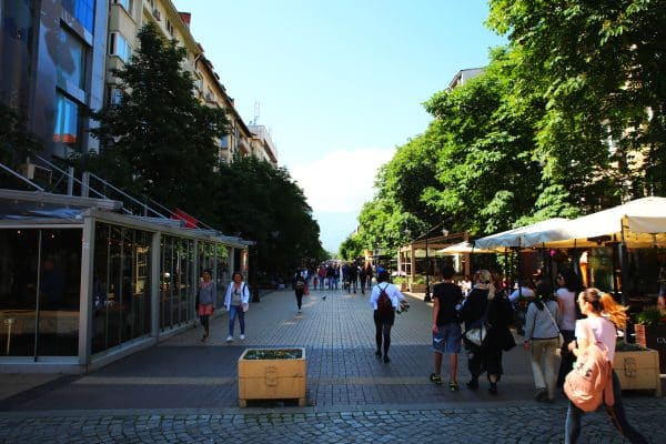 Etwas später stoßen wir bei unserem Bummel auf den Vitoscha-Boulevard, Sofias bedeutendste Einkaufsstraße, die als Fußgängerzone zum entspannten Flanieren und Erholen in Cafes sowie Restaurants einlädt.Im Hintergrund entdeckt man die Nidelja Kathedrale, die 1925 das Ziel eines kommunistischen Anschlags war, bei dem 120 Menschen getötet und 500 weitere verletzt worden.